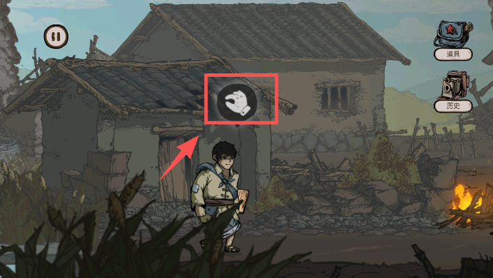 3、根据画面提示,点击房屋区域的交互图标,触发物品获取操作。
