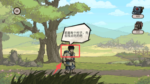 1、观察角色提示,按照指引向村庄方向移动,推进游戏进程。