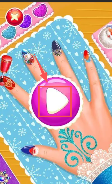 1、确认当前美甲的装扮效果后,点击界面中的三角形播放按钮,推进到下一个美甲操作环节。