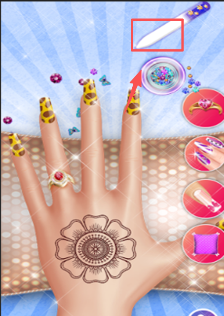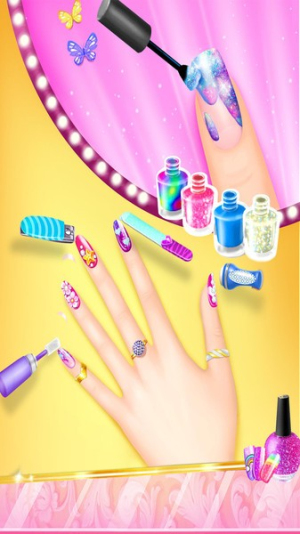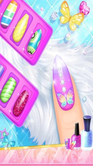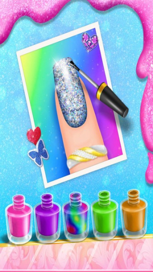 2、进入美甲设计环节,依次进行修剪指甲形状、挑选底色甲油、添加花纹贴纸或闪粉装饰等步骤,尽情发挥创意。