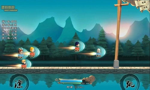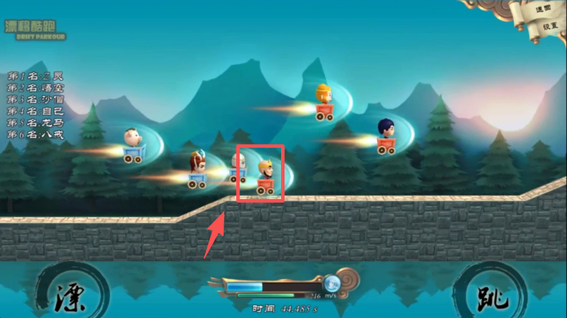4、利用漂浮加速和跳跃操作,紧跟其他角色的节奏,维持在赛道的靠前位置。