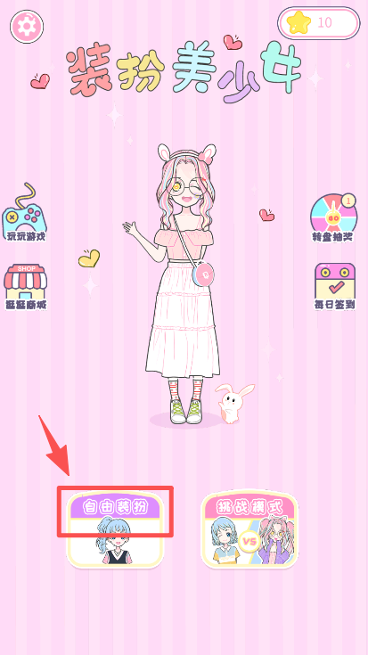 2、在主界面点击标红的 “自由装扮” 按钮,进入角色装扮的操作页面。