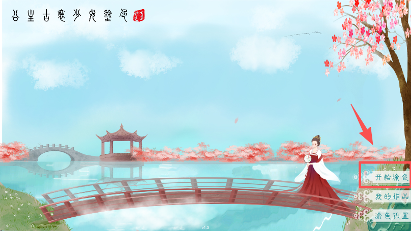 1、点击界面右侧标红的 “开始涂色” 按钮,进入游戏的涂色环节。