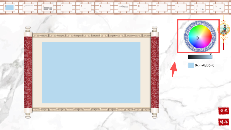 3、点击标红的调色盘,挑选想要的颜色来为画作进行涂色。