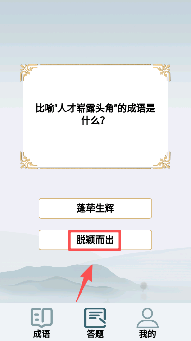2、选中标红的 “脱颖而出”,完成 “人才崭露头角” 对应的成语题。