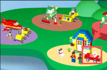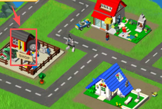 1、点击标红的建筑区域,进入该区域开展乐高相关互动操作。
