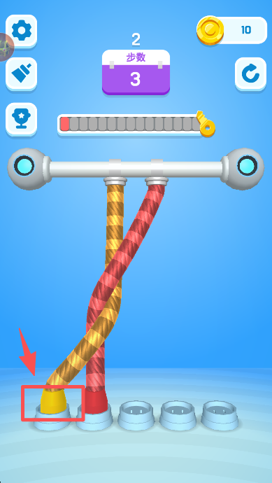 4、点击标红的黄色绳端,完成绳子的对应摆放操作。