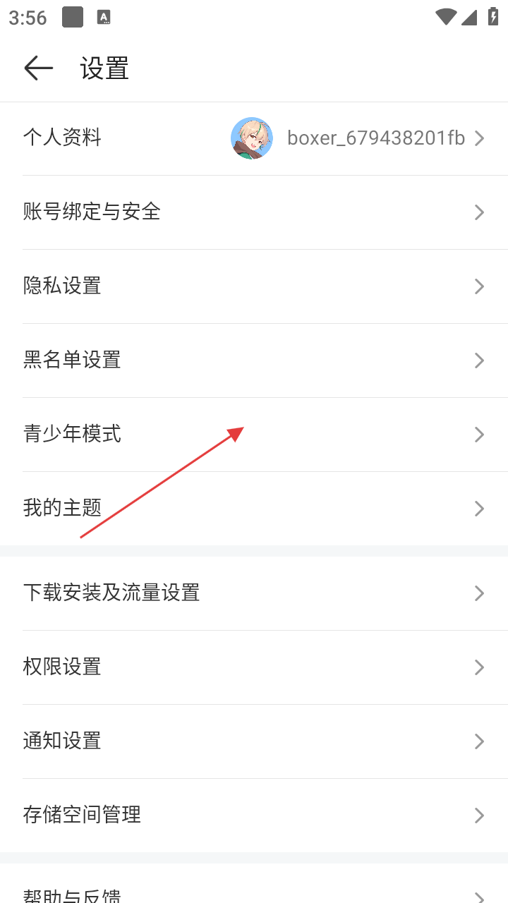 3、在设置界面,找到【青少年模式】选项并点击,进入青少年模式设置页面。