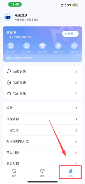 4、点击我的板块,可查看我的表情、我的妙语等个人功能设置,还能进行意见反馈等操作。