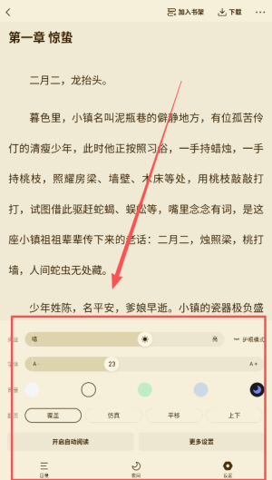 4、阅读设置选项允许用户自由调整界面背景和字体样式,打造最符合个人喜好的阅读环境,让您畅享无阻阅读乐趣。