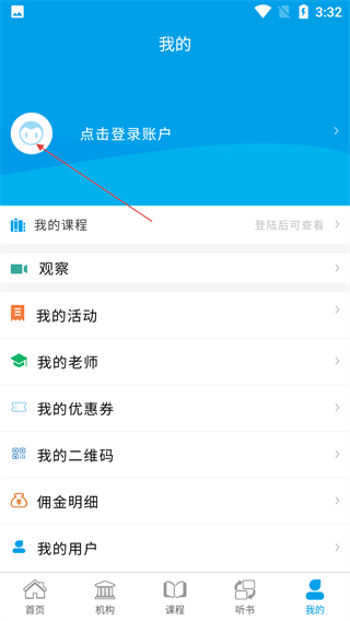 2、在“我的”页面,点击“点击登录账户”区域,进入登录界面。