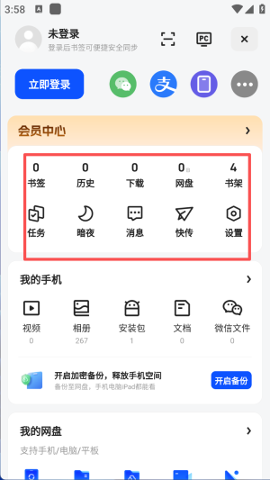 4、最后,在“我的”页面中,可以管理书签、历史记录等个人信息。