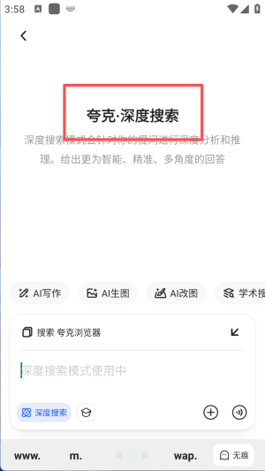 2、其次,点击搜索结果中的“夸克·深度搜索”进行深入查询。