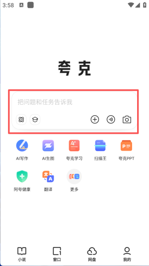 1、首先,在夸克应用主界面,点击搜索框输入问题。