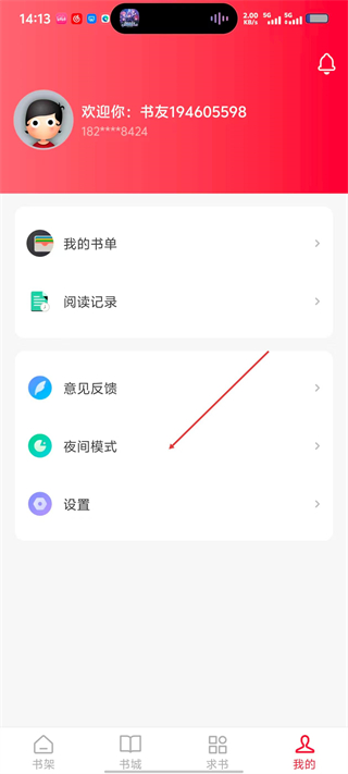 2、在个人中心,找到并点击【夜间模式】选项,进入夜间模式设置界面。