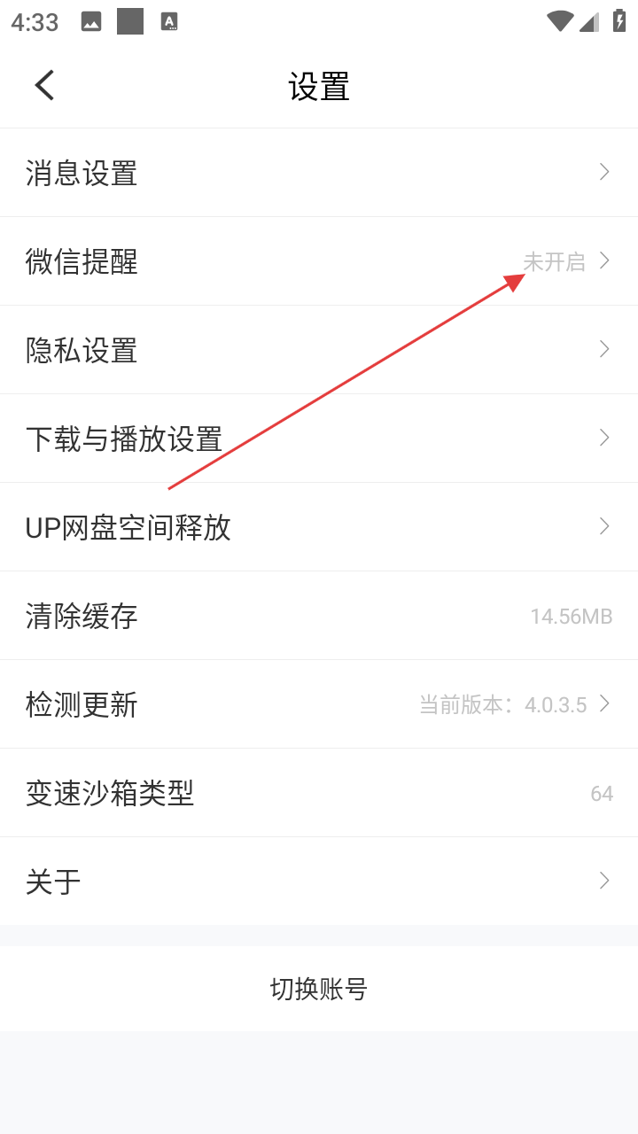 3、在设置界面,点击【微信提醒】,可进入微信提醒设置页面,开启微信提醒功能。