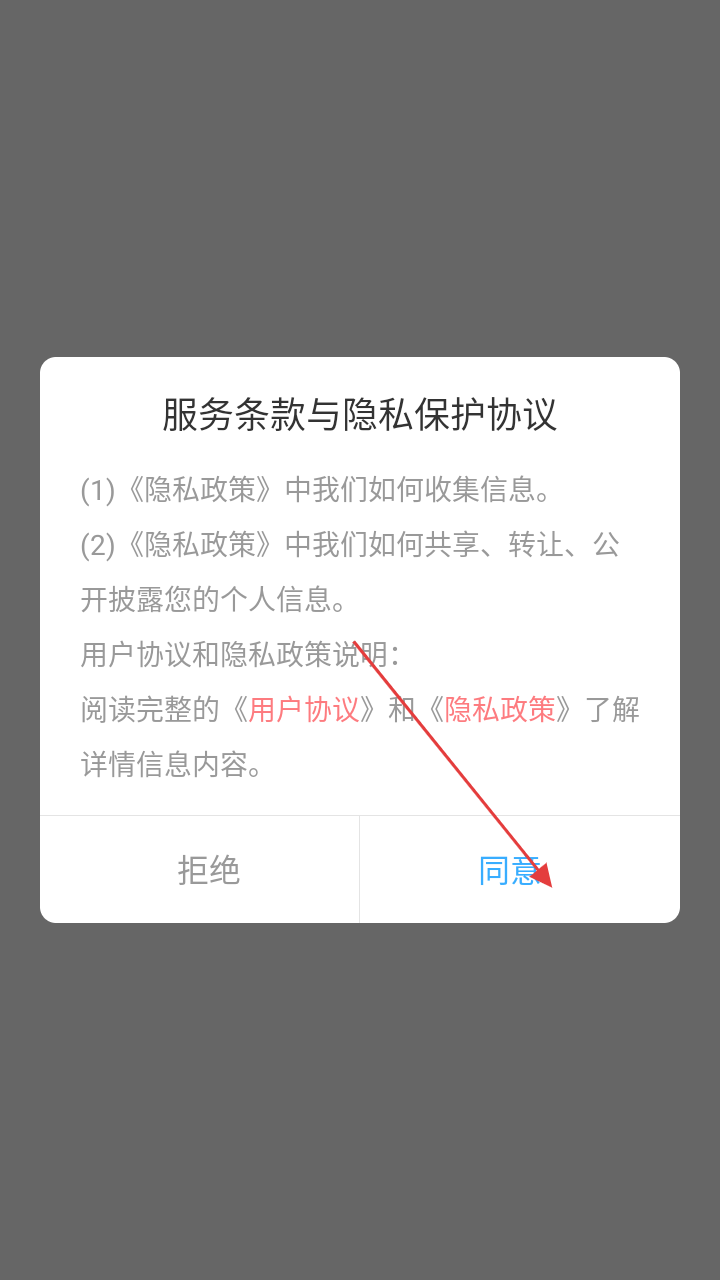1、使用软件前,需阅读【服务条款与隐私保护协议】,了解【用户协议】和【隐私政策】后点击【同意】,方可进入软件。