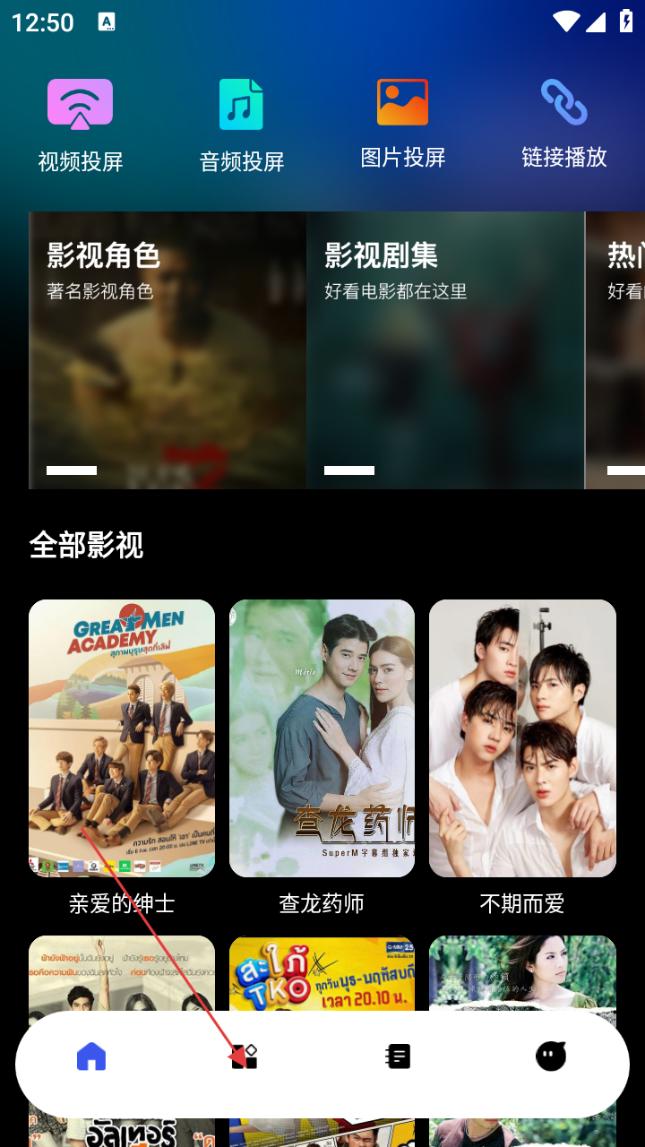 2、进入软件主界面,可利用【视频投屏】【音频投屏】功能,还可点击底部方块图标进入功能页面。