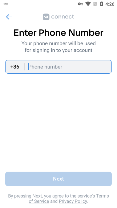 2、填写带区号+86的手机号,同意条款后点击Continue继续。