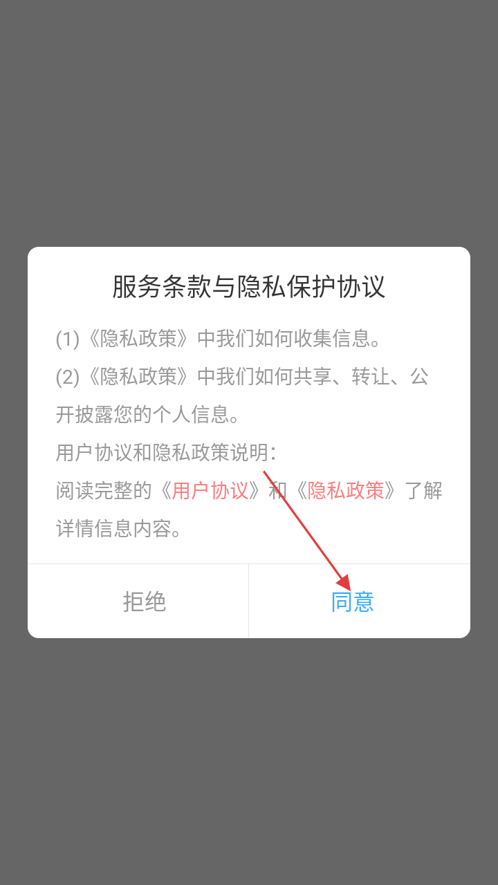 1、使用软件前,需阅读【服务条款与隐私保护协议】,了解【用户协议】和【隐私政策】后点击【同意】,方可进入软件。