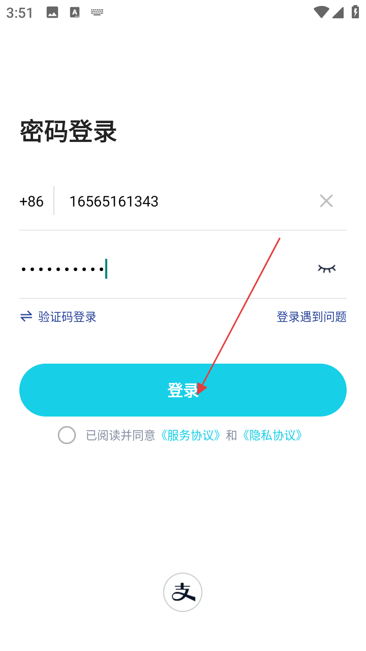 4、填写好手机号和密码后,勾选同意协议,点击【登录】按钮,尝试登录思语。
