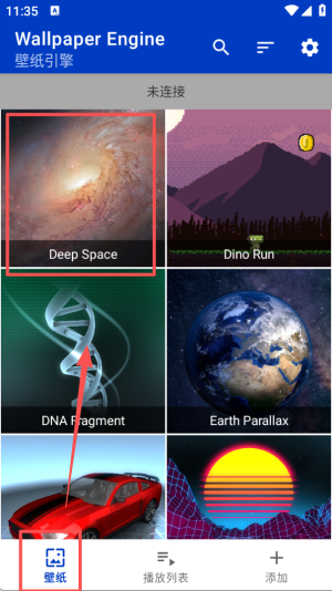 1、在界面底部点击 “壁纸” 选项,在展示的壁纸中选中 “Deep Space” 这一壁纸。
