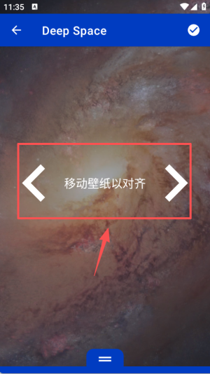 2、进入 “Deep Space” 的预览界面,借助界面中的左右箭头,移动壁纸来完成对齐操作。
