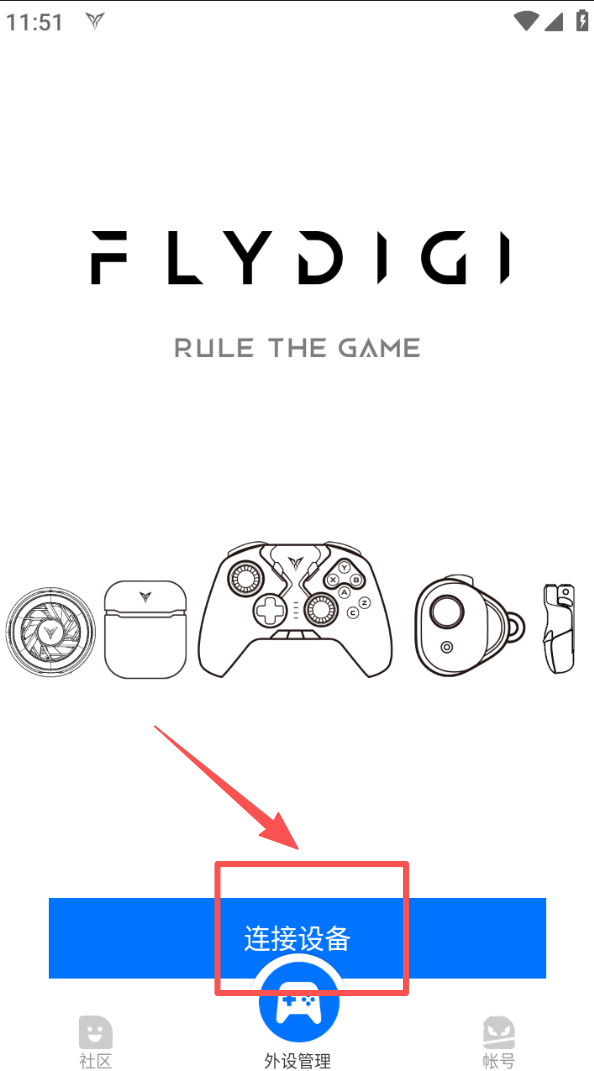 2、进入外设管理界面,点击 “连接设备” 按钮,即可开始匹配并连接飞智外设设备。