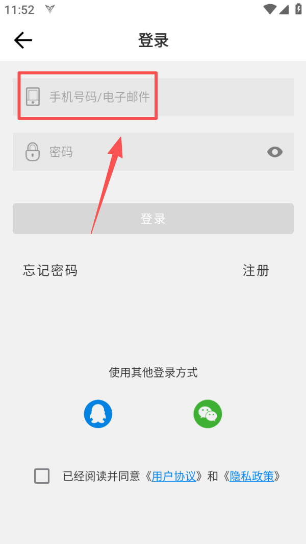 4、在登录界面,输入手机号码或电子邮件,再填写密码,即可完成登录流程。