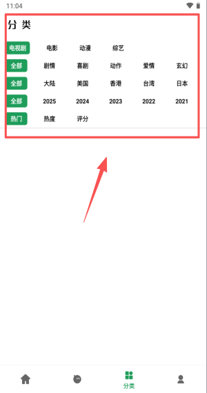 3、在分类页选2025大陆剧情,按热度评分筛选想看的电影或动漫。