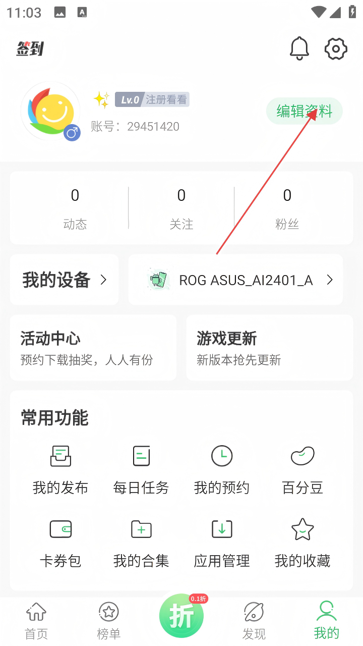 2、进入个人中心后,点击【编辑资料】按钮,可进入资料编辑页面。