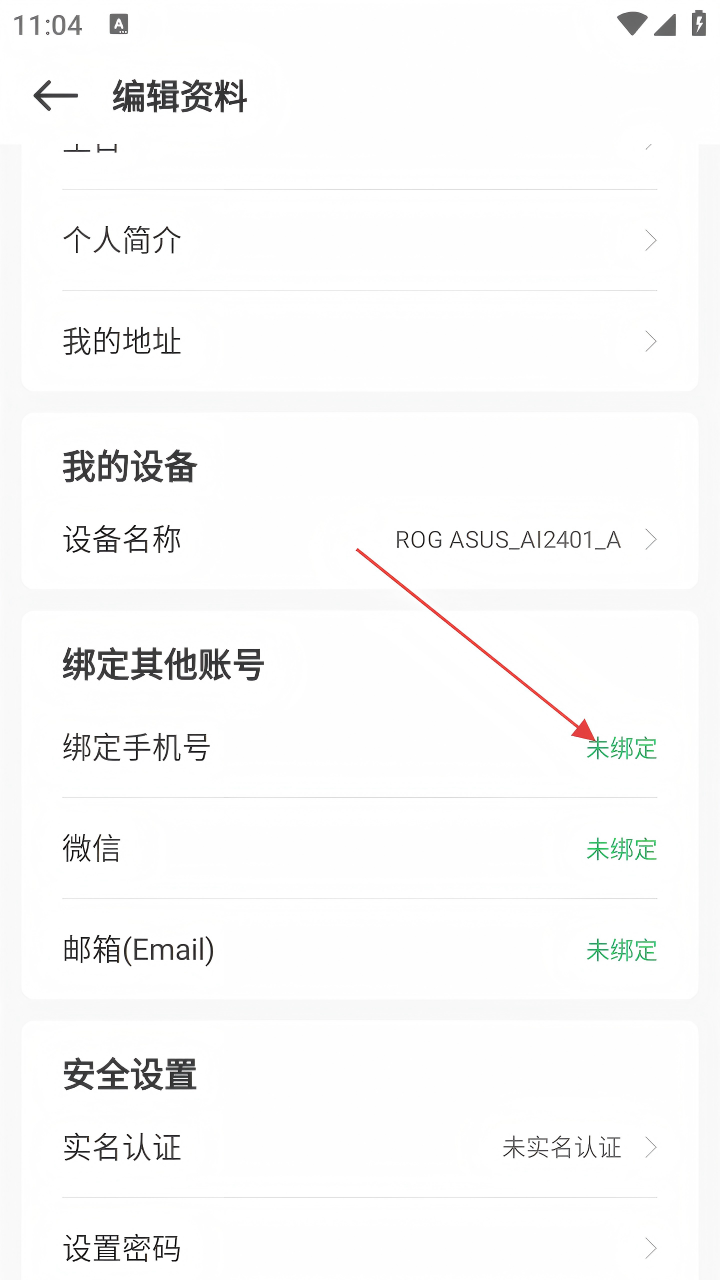 3、在编辑资料页面,找到【绑定手机号】选项,点击可进入手机号绑定流程。