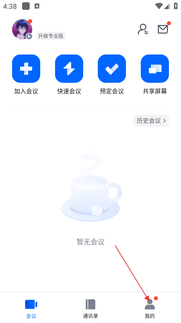 1、在腾讯会议主界面,点击右下角【我的】选项,进入个人相关设置页面。