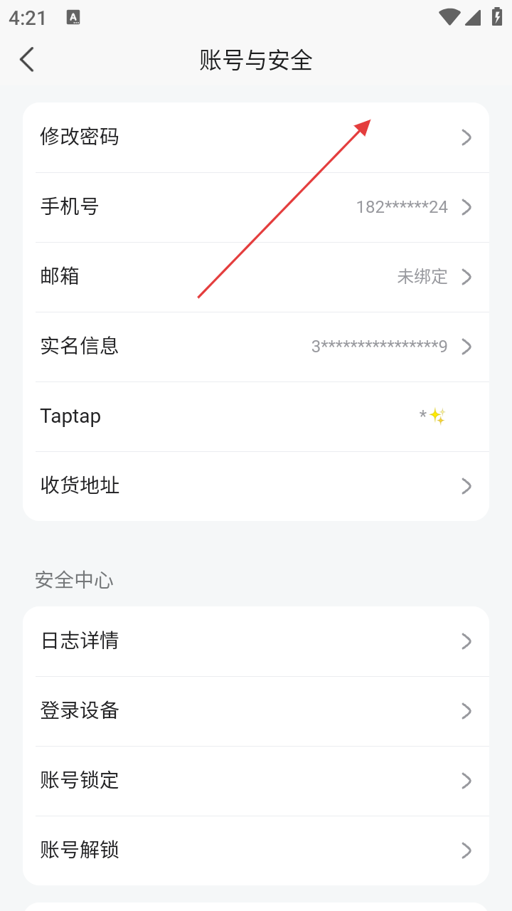 4、在账号与安全界面,点击【修改密码】即可进入修改密码流程。