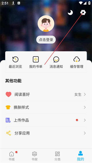 2、在个人中心,点击右上角的【设置】图标,进入设置界面。