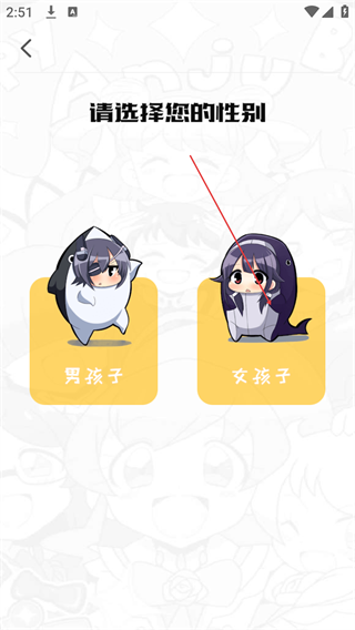 3、在“请选择您的性别”界面,选择“男孩子”或“女孩子”后,会弹出“性别偏好”确认弹窗,点击【确定】完成性别偏好设置。