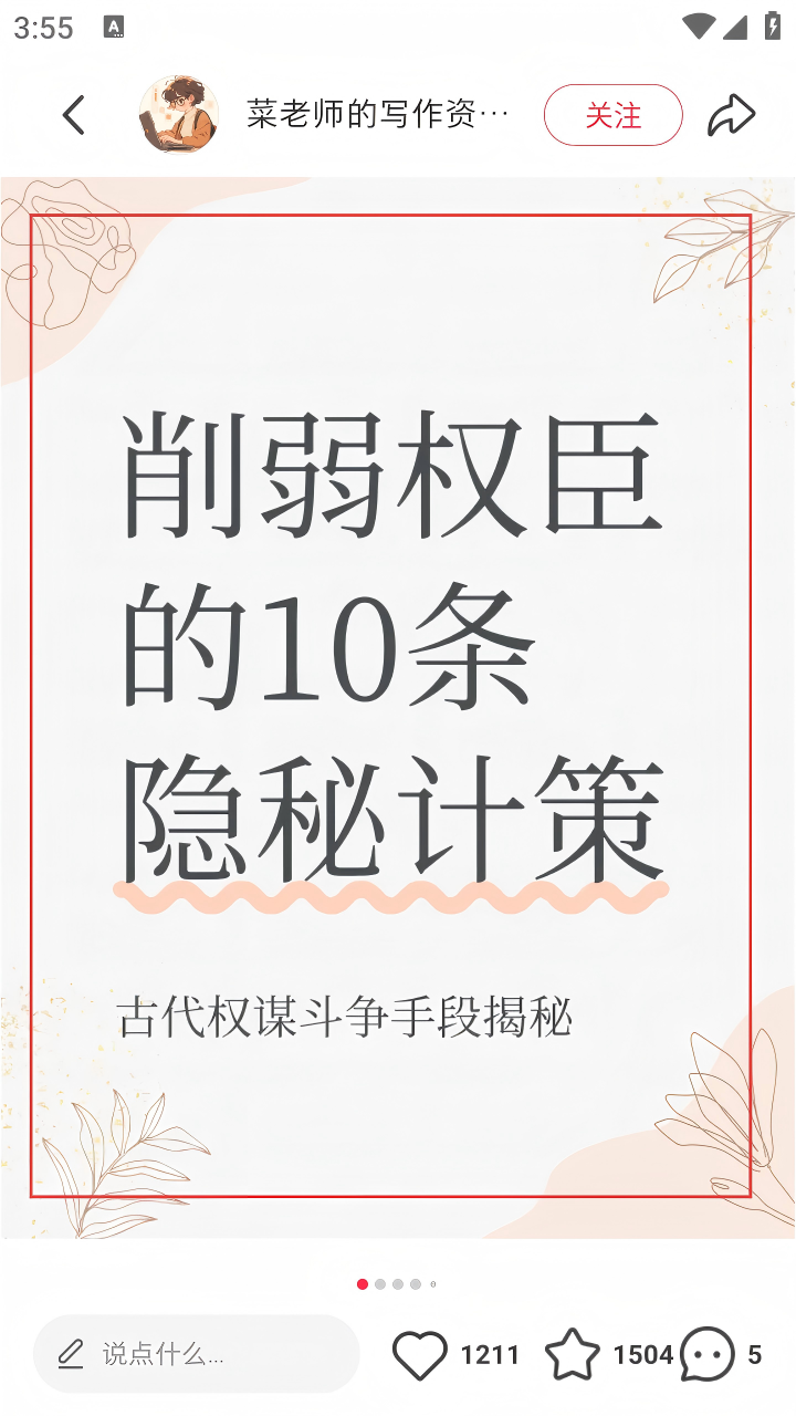 4、点击感兴趣的内容,如【削弱权臣的10条隐秘计策】,进入详情页查看并互动。