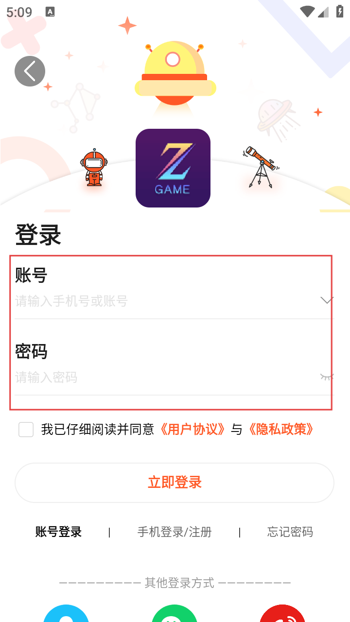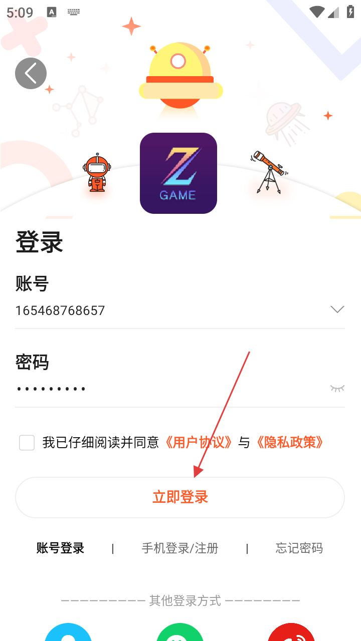 3、在登录界面,选择账号登录方式,输入账号和密码,准确填写后勾选已阅读并同意协议。