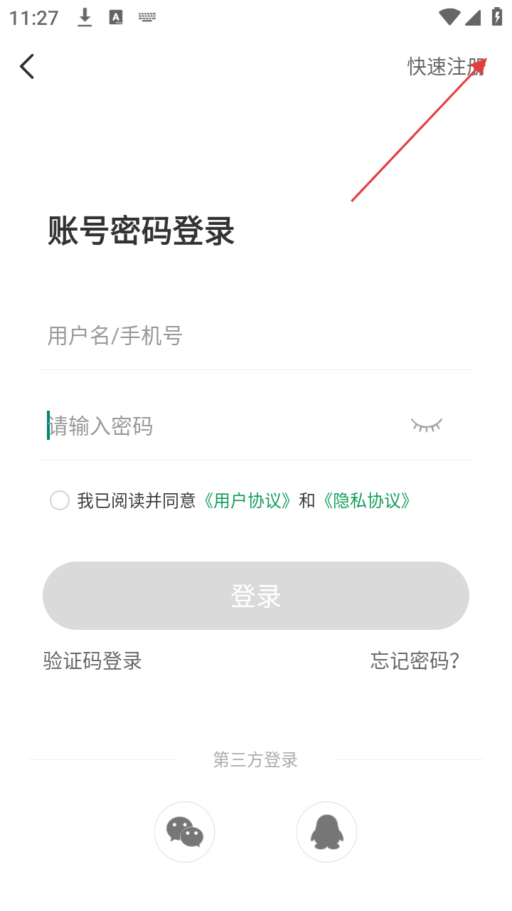 3、若需注册账号,点击【快速注册】选项,进入快速注册页面。