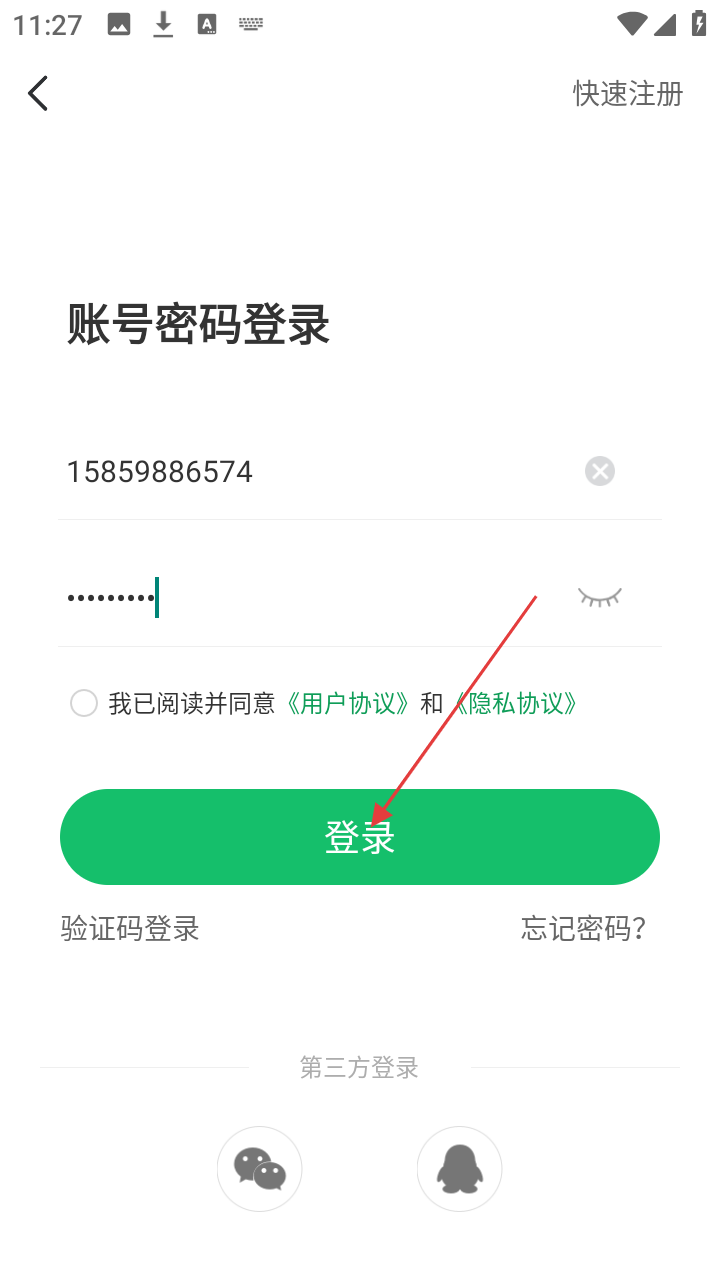 4、在快速注册页面,依次输入手机号码、获取并输入验证码、设置密码,点击【注册】按钮即可完成账号注册流程。