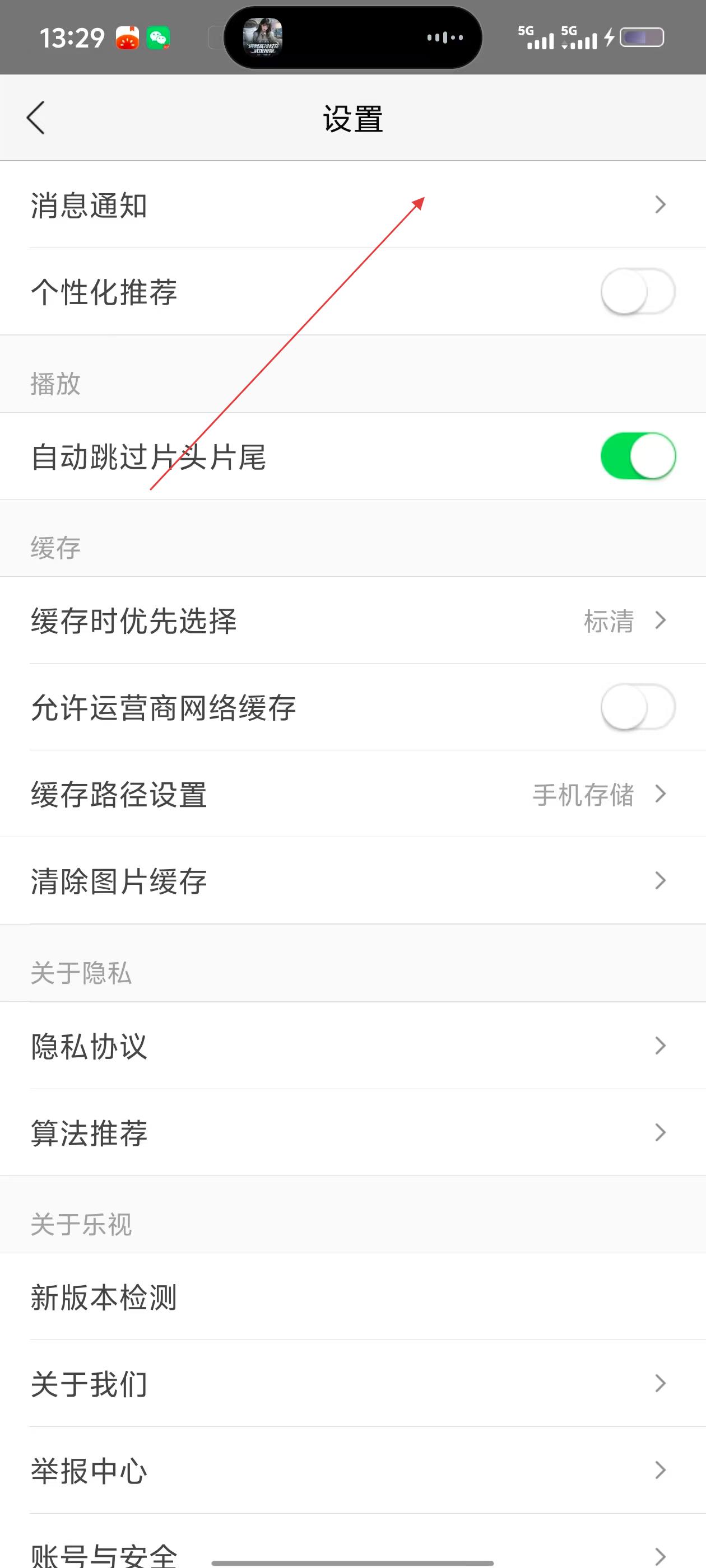 3、在设置页面,可找到【消息通知】【个性化推荐】等选项,点击【消息通知】可进入相关设置界面。