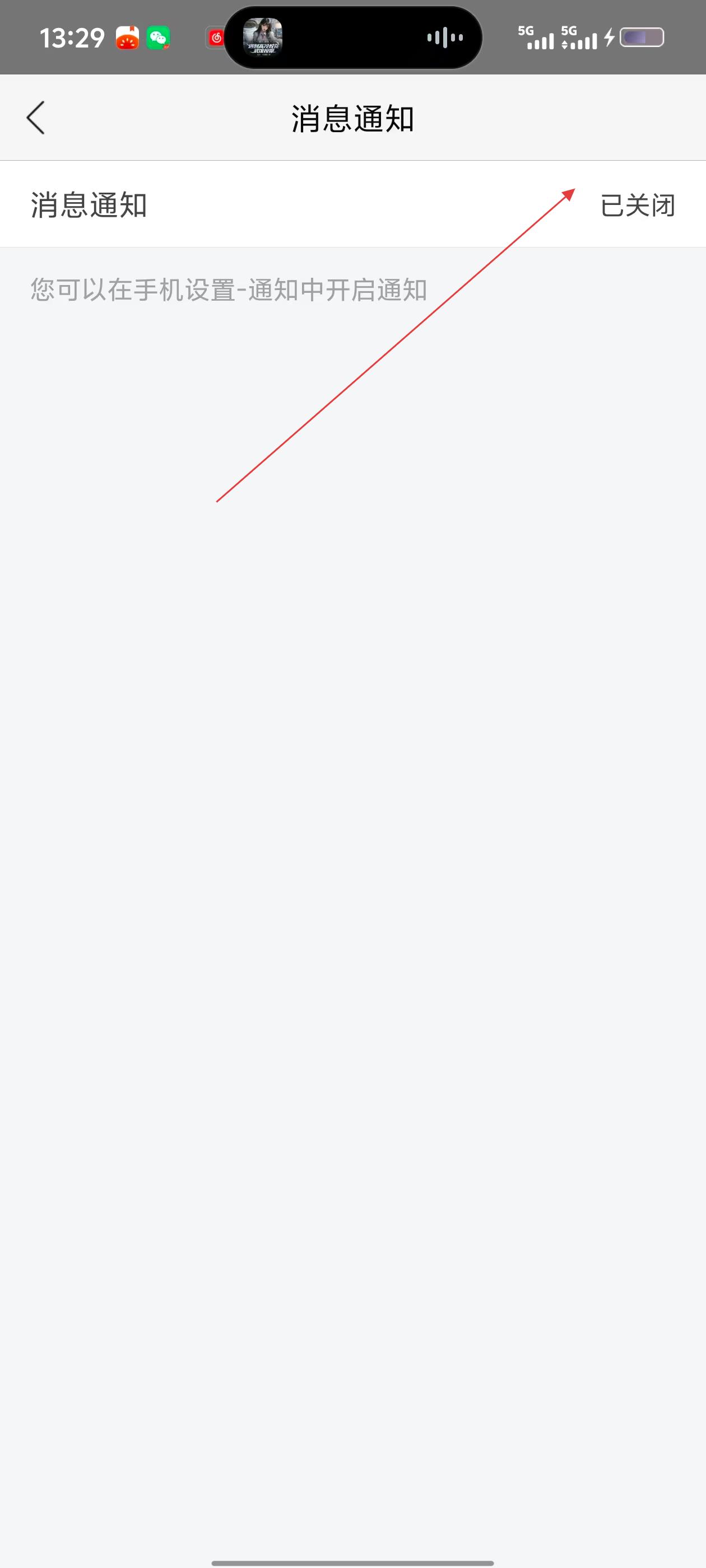 4、进入消息通知页面,能看到消息通知状态为已关闭,可根据需求在手机设置通知中开启。