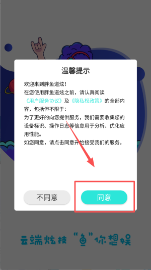 1、使用胖鱼游戏前,需认真阅读用户服务协议及隐私权政策,同意后即可开启服务体验。