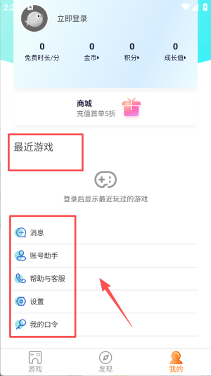 2、进入我的板块,可查看最近游戏记录,还能使用消息、账号助手、帮助与客服等功能。