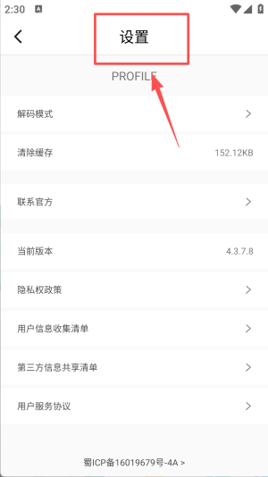 3、在设置板块,可进行解码模式设置、清除缓存,还能查看版本信息、隐私权政策等内容。