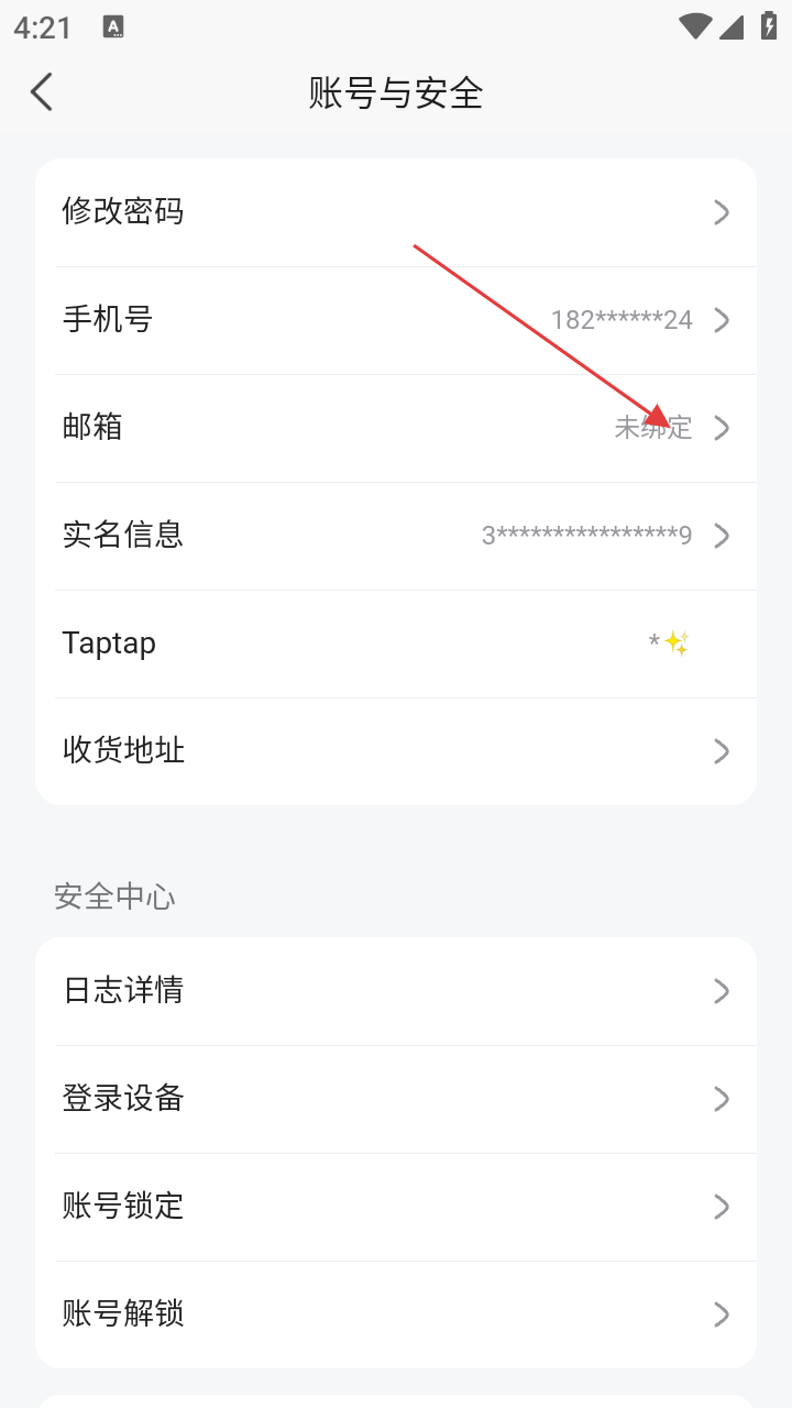 4、在账号与安全界面,点击【邮箱】后的“未绑定”选项,可进行邮箱绑定操作,绑定后可增强账号安全性,方便账号管理。