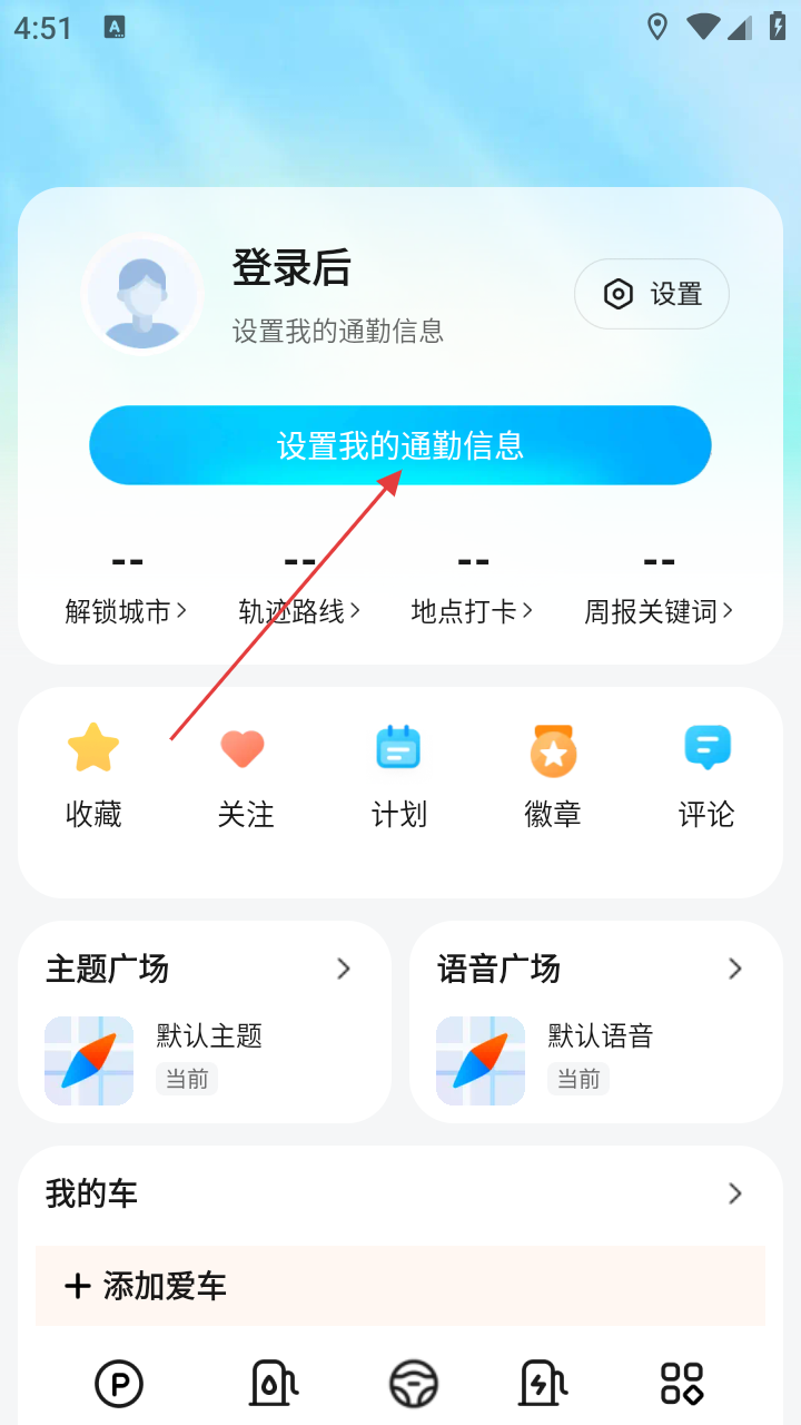 3、在个人页面,找到并点击【设置我的通勤信息】按钮,进入相关设置流程。