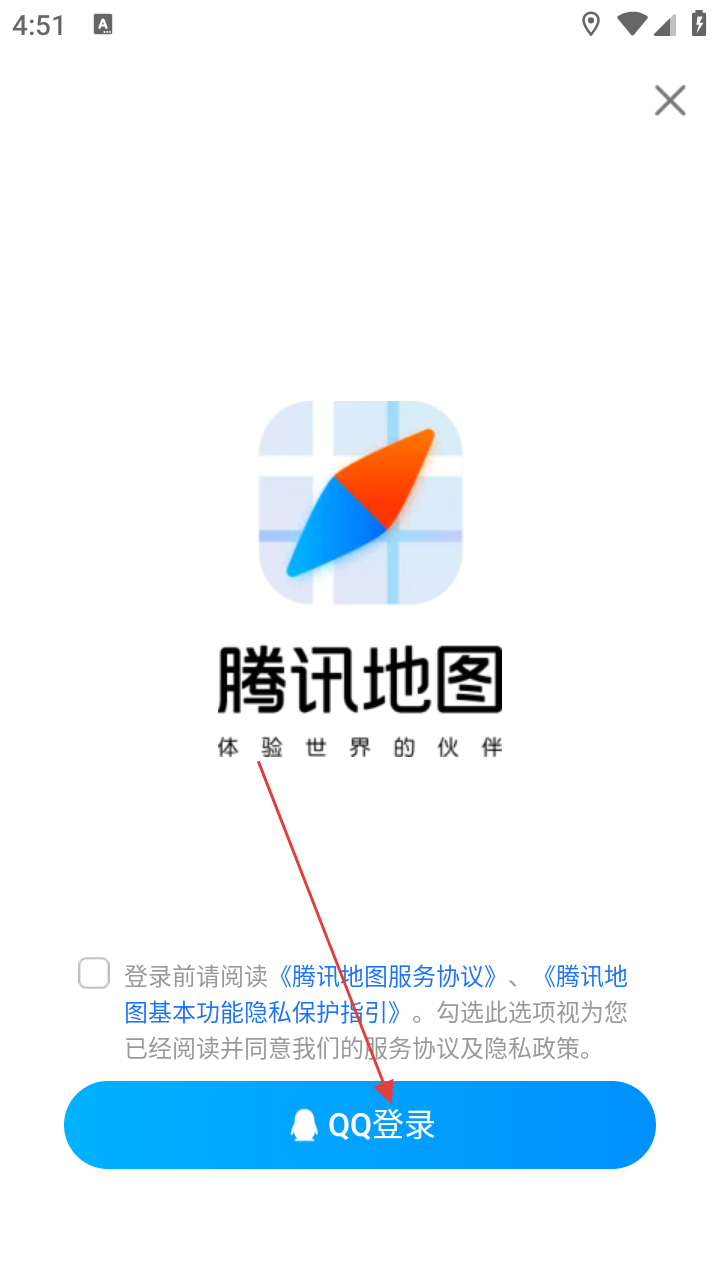 4、进入登录页面后,勾选相关协议,然后点击【QQ登录】按钮,进行登录操作。