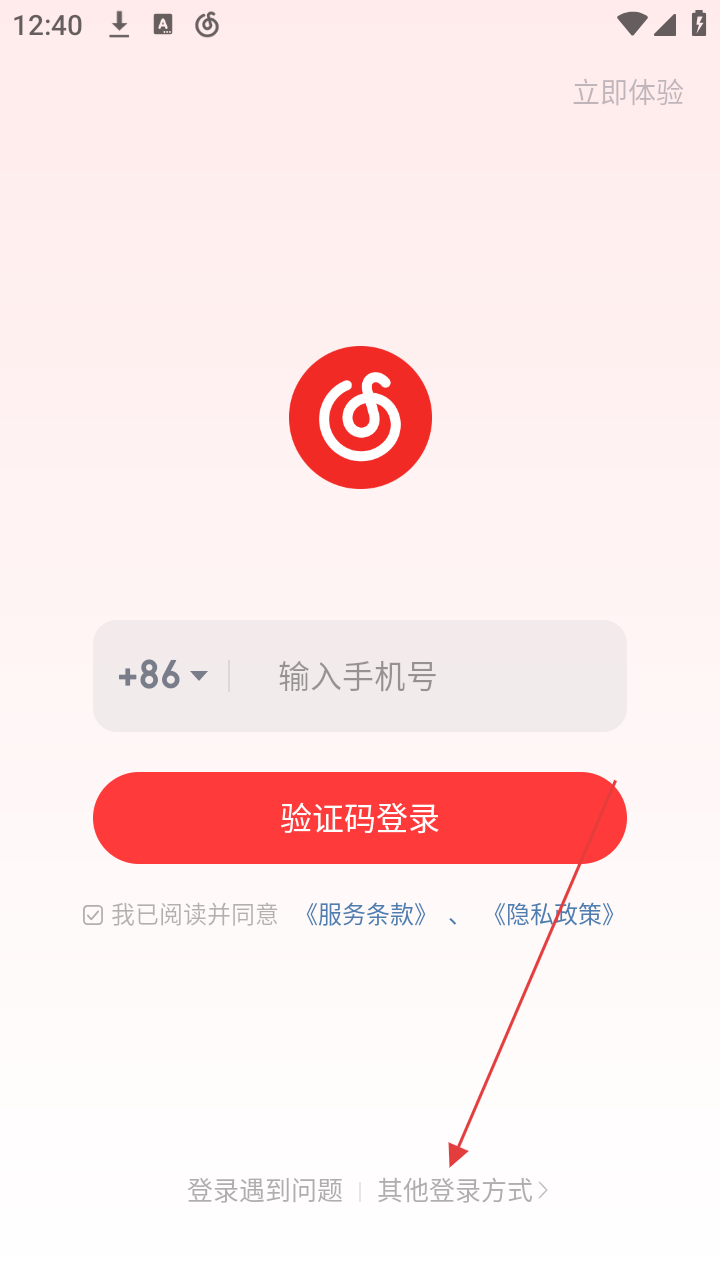 2、进入登录界面,可输入手机号进行验证码登录,也能点击下方【其他登录方式】,选择其他登录途径。